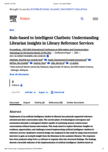 Sarif Abdullah, Sharifah Nur Amirah and Muhammad Nubli, Muhammad Al Faateh and Md Nor, Nor Saadah and Kartiwi, Mira and Khedher, Akram M Z M and Winarti, Titin (2026) Rule-based to Intelligent Chatbots: understanding librarian insights in library reference services. In: 10th International Conference on Information and Communication Technology for the Muslim World (ICT4M), 26-27 November 2025, KICT IIUM.