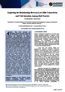 Rushdi, Wardah and Saad, Mazni (2026) Exploring the relationship between last-mile connectivity and visit intention among rail tourists. Journal of Contemporary Tourism and Hospitality, 2 (1). pp. 99-109. E-ISSN 3122-6744