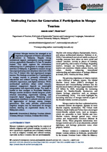 Azmi, Amirah and Saad, Mazni (2026) Motivating factors for Generation Z participation in mosque tourism. Journal of Contemporary Tourism and Hospitality Research, 2 (1). pp. 65-74. E-ISSN 3122-6744