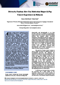 Abdul Razak, Rayna and Saad, Mazni (2026) Driven by fandom: how fan motivation shapes K-pop concert experiences in Malaysia. Journal of Contemporary Tourism and Hospitality Research, 2 (1). pp. 88-98. E-ISSN 3122-6744