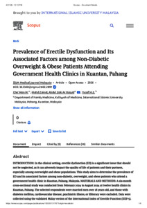 Che' Man, Mohamad and Mohd Zainal, Abdul Zaki Ar Rasyid and Yusof, Muhammad Zubir (2026) Prevalence of erectile dysfunction and its associated factors among non-diabetic overweight & obese patients attending government health clinics in Kuantan, Pahang. IIUM Medical Journal Malaysia (IMJM), 25 (2). pp. 38-46. ISSN 1823-4631 E-ISSN 2735-2285