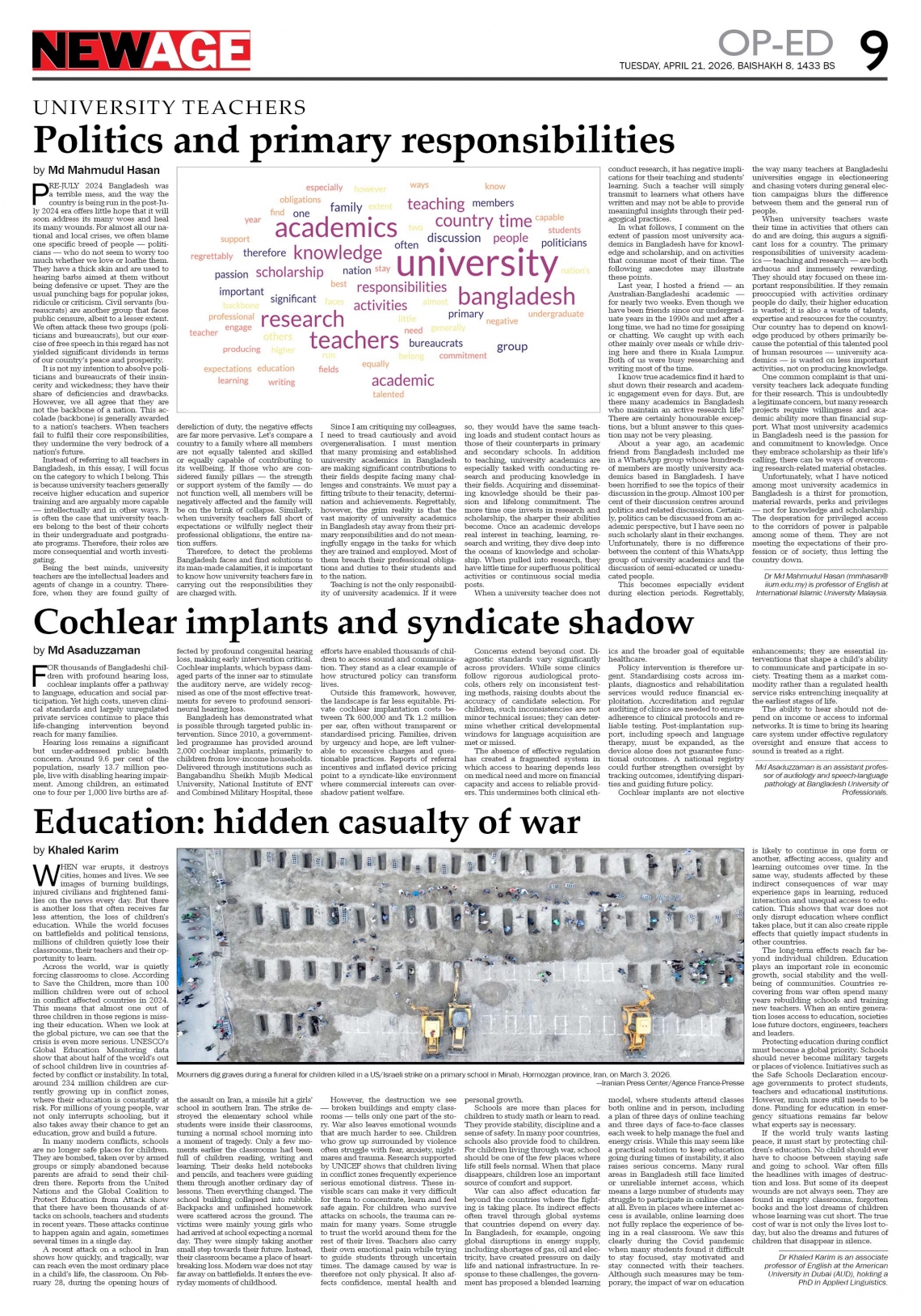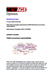 Hasan, Md. Mahmudul (2026) University teachers: politics and primary responsibilities. New Age, NA (NA). p. 9.