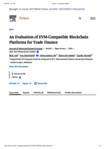 Bhat, Asif and Mohd Nor, Rizal and Amiruzzaman, Md and Islam, Md. Rajibul and Quadir, Munleef (2025) An evaluation of EVM-compatible blockchain platforms for trade finance. Journal of Advanced Research Design, 127 (1). pp. 150-172. E-ISSN 2289-7984